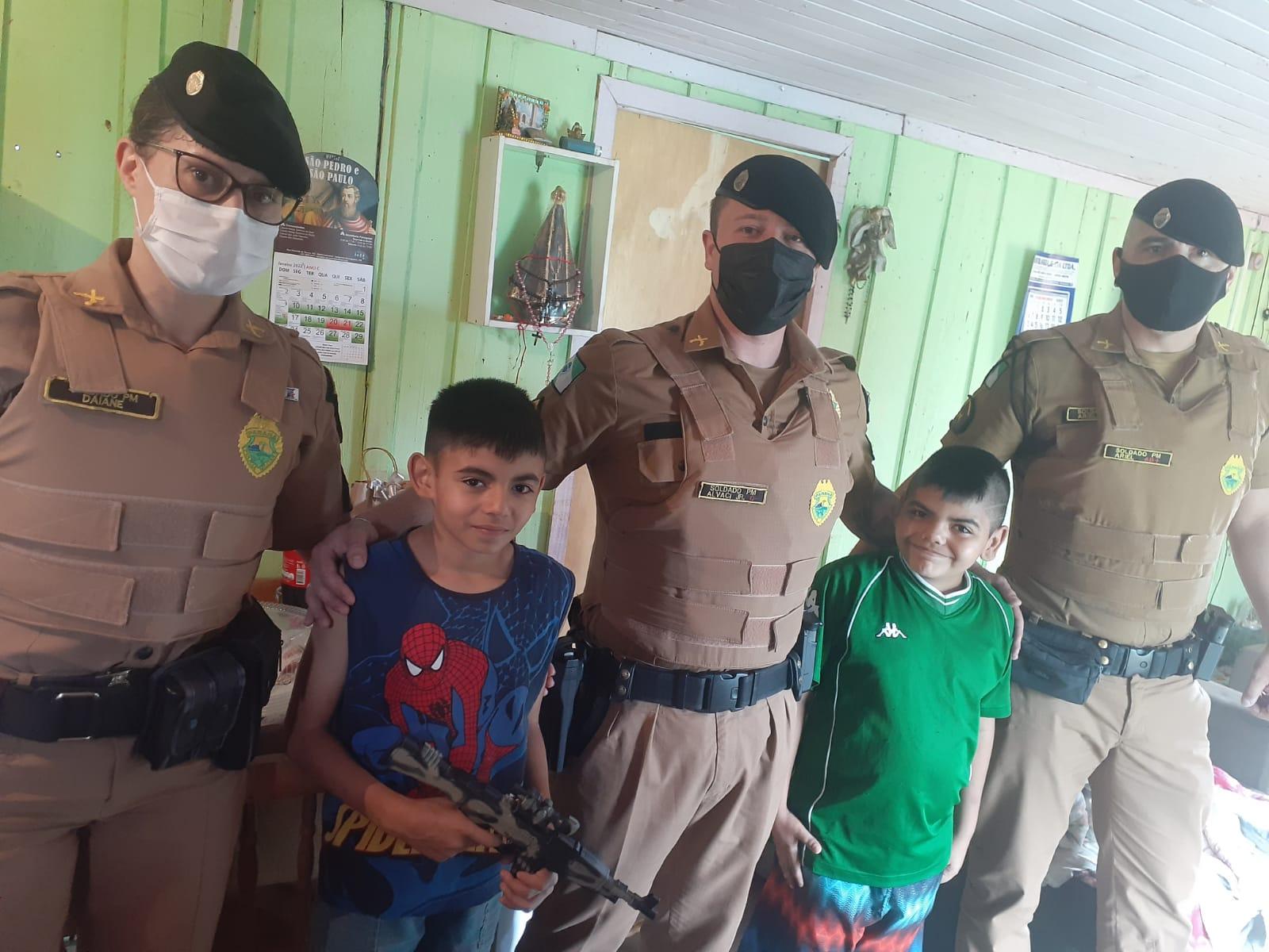 Equipe policial faz surpresa para garoto em festa de aniversário, em Guarapuava