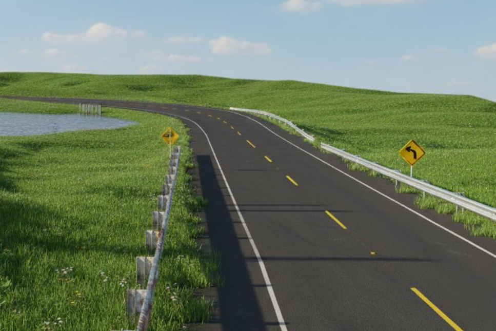 A plataforma da pista terá 9,60 m, composta por acostamento (2x1,50 m) e faixas de tráfego (2x3,30 m). Para realizar o estudo, foi pensado em um caminhão semirreboque viajando pela rodovia, para dimensionar interseções, acessos, retornos e condições de tráfego.