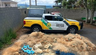 FLAGRANTEPM Ambiental apreende mais de um quilômetro de redes de pesca ilegais no Rio Cavernoso, em Candói