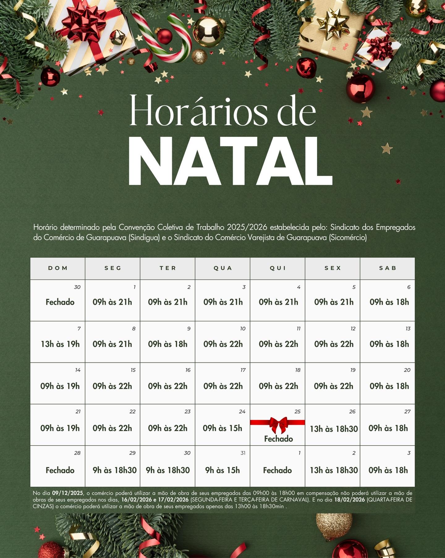 A presidente da ACIG, Maria Inês Guiné, explica que o evento e o horário estendido caminham juntos para fortalecer a cidade. “A Parada de Natal já faz parte do calendário afetivo da nossa cidade. É um momento preparado com muito cuidado para acolher as famílias guarapuavanas e fortalecer o comércio local nesse período tão significativo”, destacou.