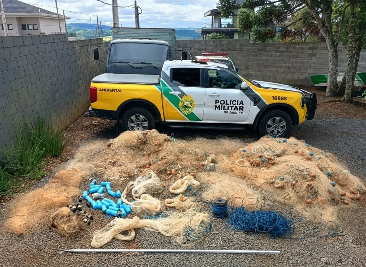 O que parecia apenas mais um patrulhamento de rotina se transformou em uma das maiores apreensões de apetrechos ilegais de pesca da região, um retrato preocupante da pesca predatória que ameaça rios e espécies nativas.