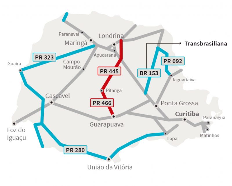 O governo do Paraná conseguiu convencer a União a aceitar a delegação de três importantes rodovias estaduais: as PRs 323, 280 e 092, além de outros trechos menores, como os contornos de Londrina, Ponta Grossa e Cascavel. Sendo assim, inverte-se a lógica que vigora há duas décadas, pois o governo federal é que havia cedido os direitos de responsabilidade de suas rodovias.
