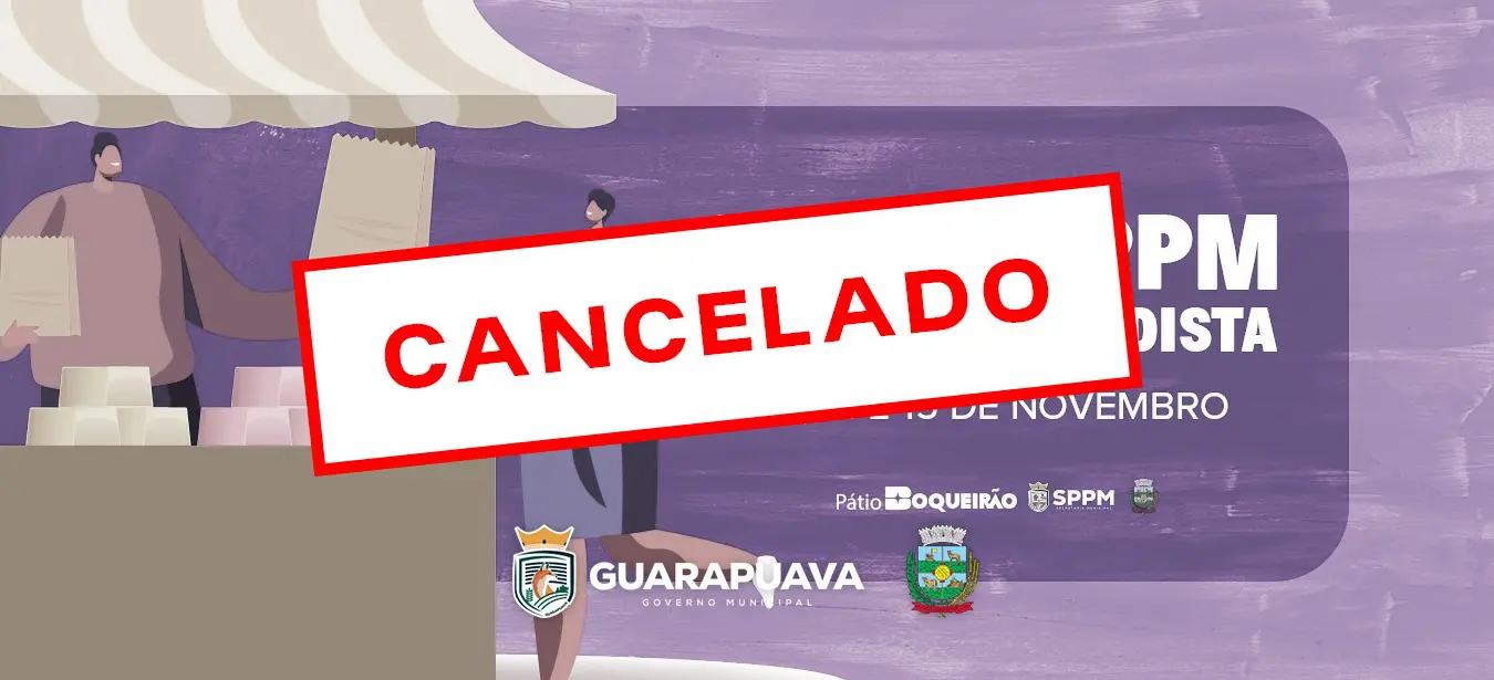 A Prefeitura de Guarapuava, por meio da Secretaria de Políticas Públicas para as Mulheres, informa que a edição especial da Feira Mensal, que seria entre esta sexta (14 de novembro de 2025) e o sábado (15), no Pátio Boqueirão, foi cancelada.