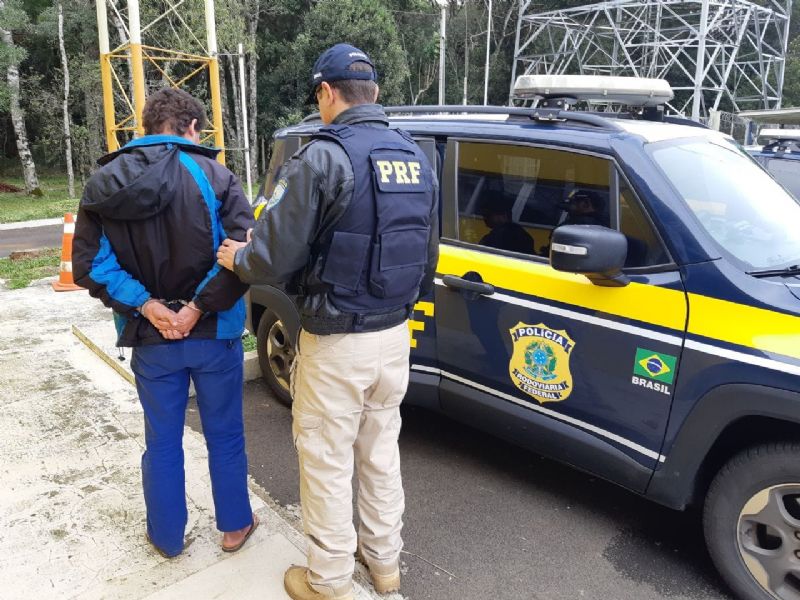 Durante a fiscalização da documentação, constatado que o passageiro do caminhão (41 anos) possuía contra si um mandado de prisão expedido pelo Tribunal de Justiça do Estado do Paraná expedido em 31/05/19 pelo Crime de Homicídio (Art. 121 do Código Penal) com pena a ser cumprida em regime fechado de 8 anos e 8 meses por crime ocorrido na Região de Campo Largo em 2001.