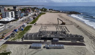 NO VERÃOMontagem dos palcos avança no Litoral; faltam 18 dias para o início dos shows